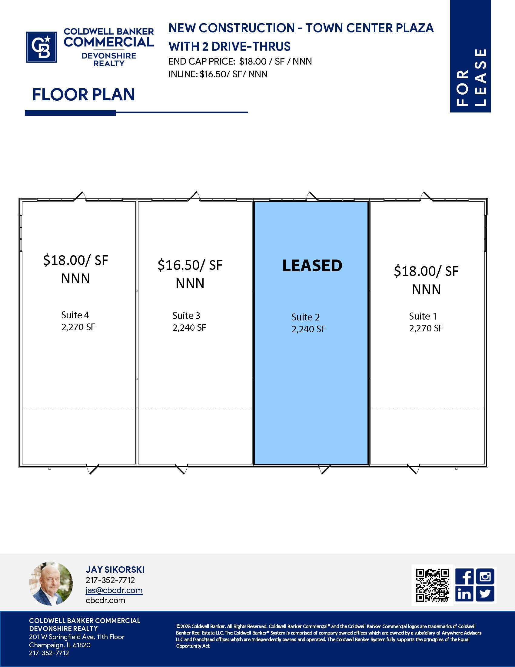 New Construction with four inline units on Town Center offering with 2 drive-thru suites. Unit sizes start at 2,240 SF range. The space is in vanilla box and has plenty of parking with 68 spaces on site. One signed lease!